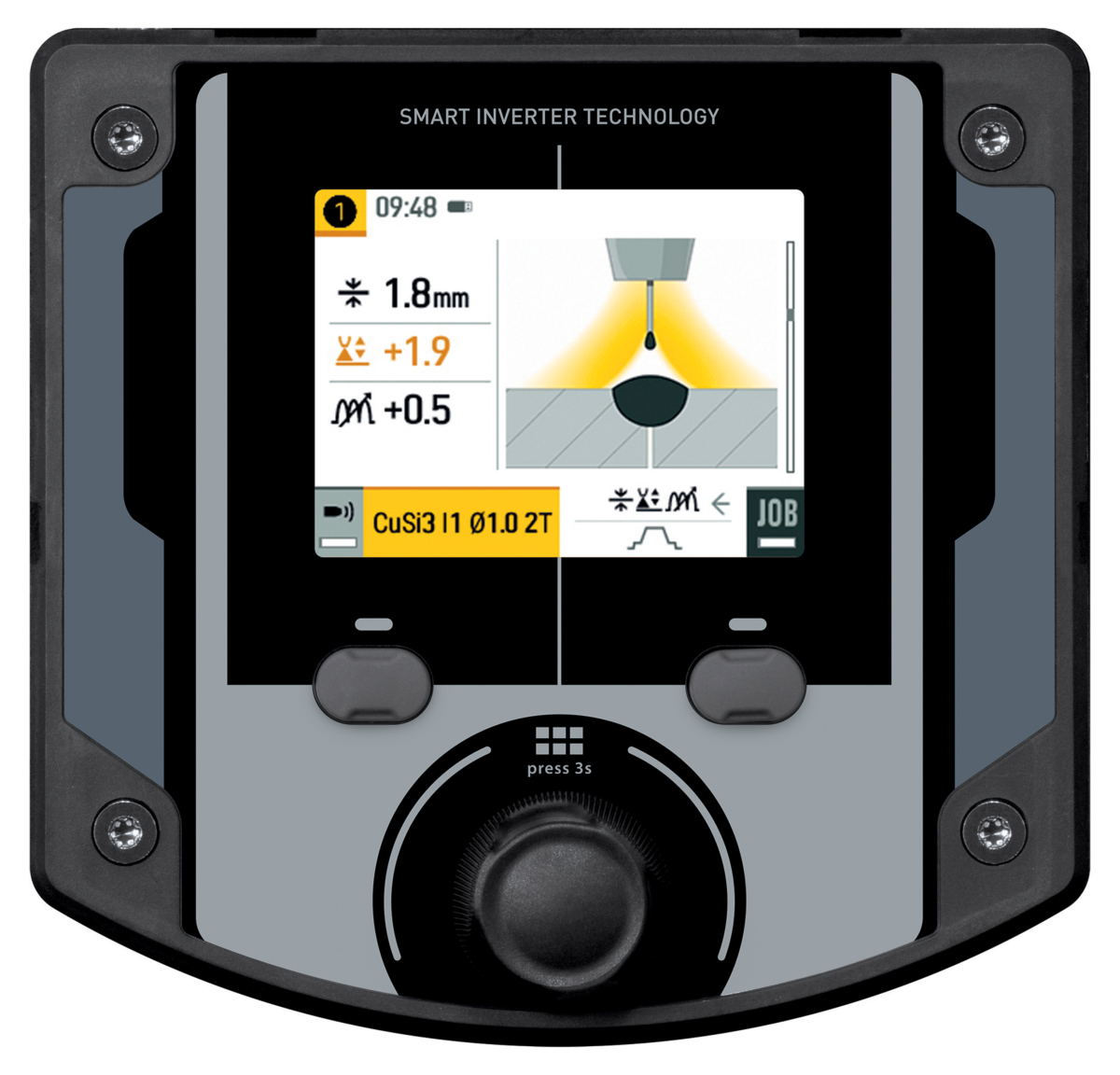 ✅ Synergies intégrées (acier, AlMg, AlSi, CrNi, CuSi) pour configurer automatiquement les paramètres optimaux après saisie du diamètre de fil, du matériau/gaz et de l'épaisseur